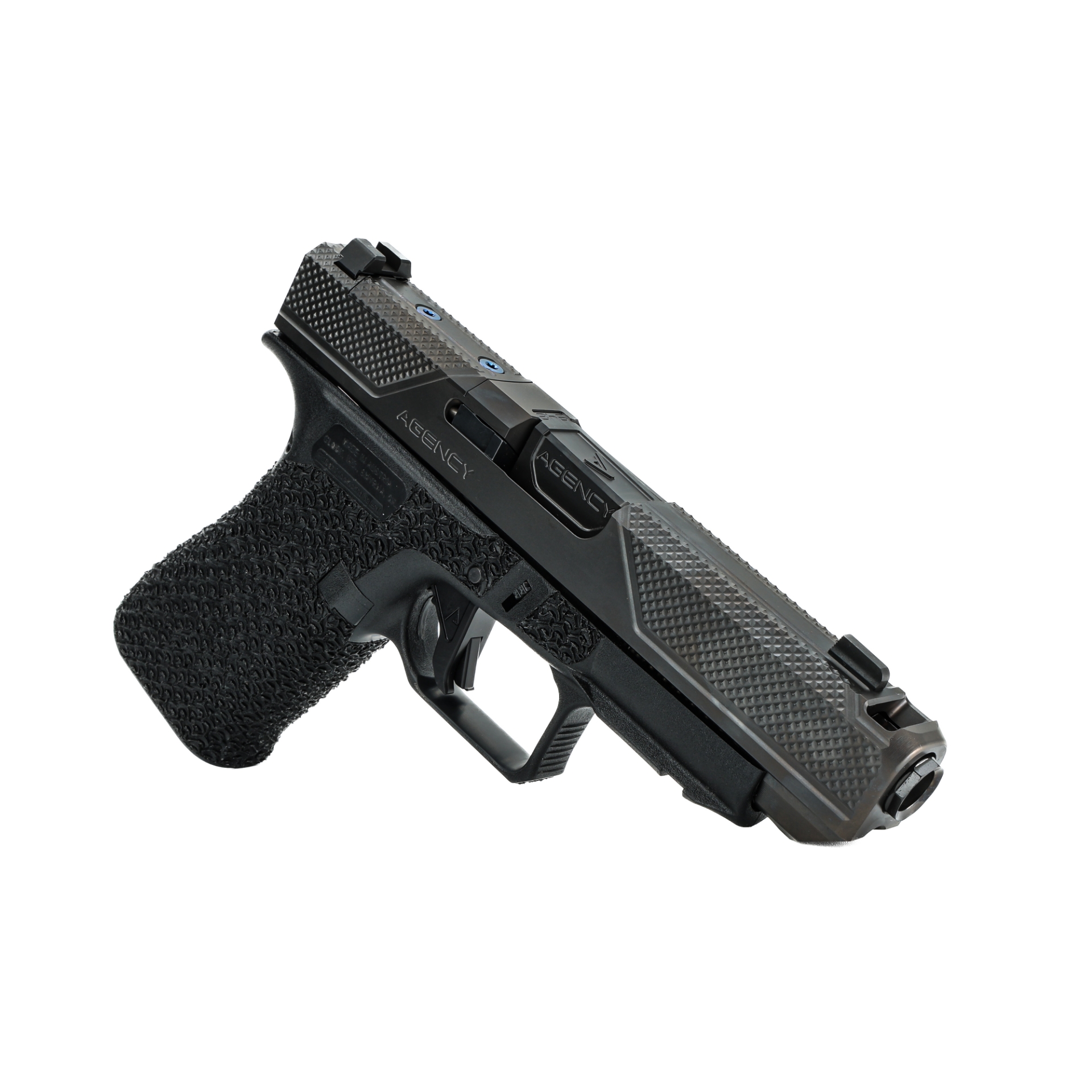 Fully customized Glock 48 direct from Agency Arms, complete with Executive slide cut, new Mono Port, and new LUX stippling pattern