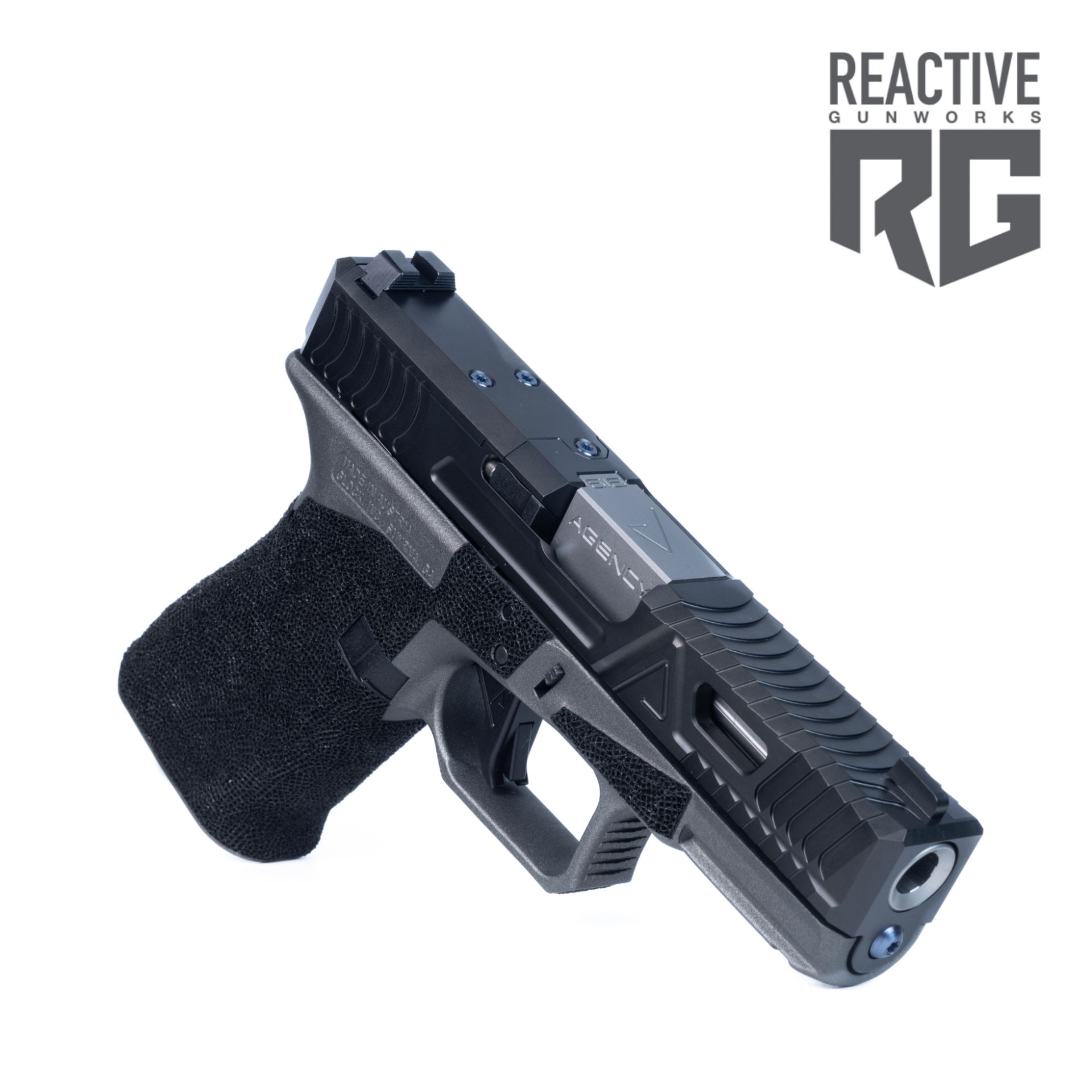 Fully customized Glock 19 Gen 3 direct from Agency Arms, complete with Cipher slide cut, DLC Slide, Standard texture framework, and milled with the Agency Optic System.