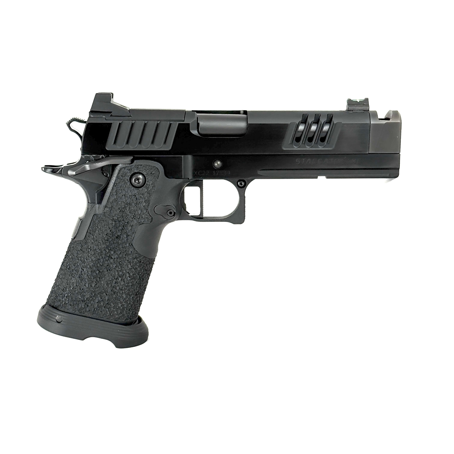 Full custom Staccato XC by Dave Modz Customs complete with Vader Polished Flats DLC coating, SVI Infinity Trigger Kit, and Stippling package with DMC Palm Swells.