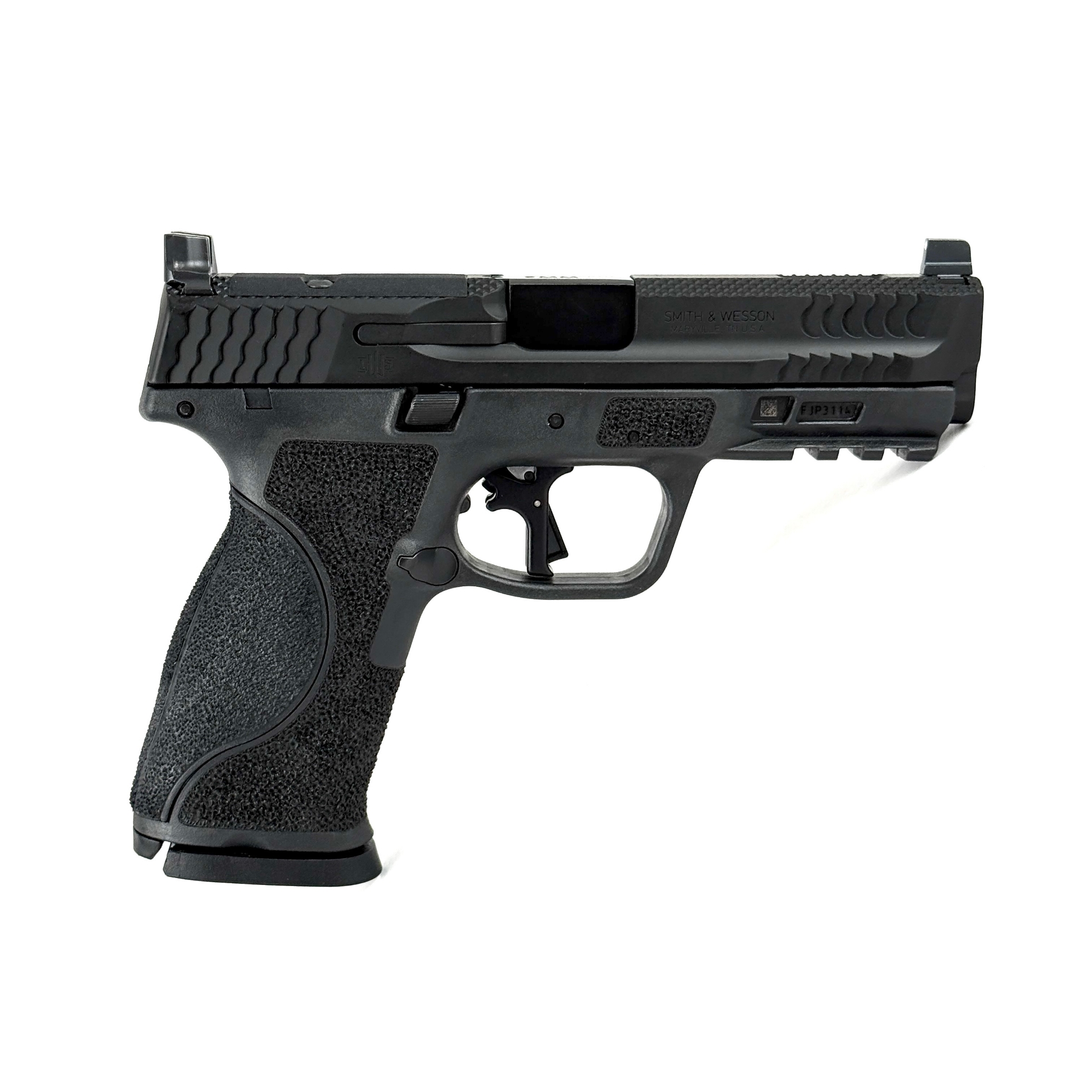 This M&P M2.0 build has been fully customized by Landers Weapon Systems with Chainsaw slide milling, XOST ("exhaust") slide/barrel porting, LWS frame work, and Apex Tactical Full Trigger Kit.