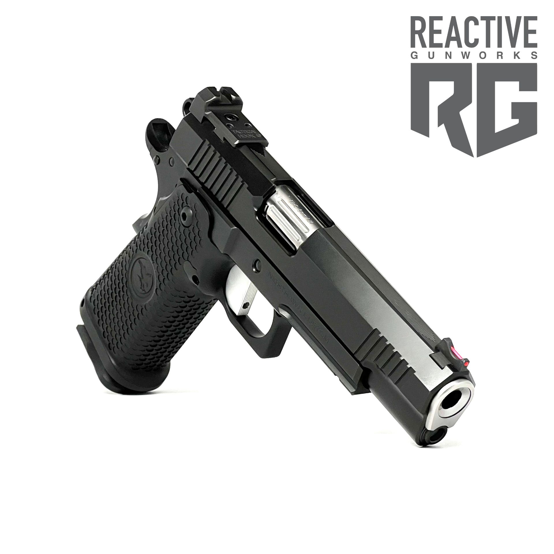 The aggressive cocking serrations provide a sure grip when racking the slide, and the one-piece magwell/mainspring housing allows quick and sure reloading. This pistol also includes a crowned barrel with a beveled and recessed slide stop as standard features. Like many Nighthawk models, this gun can be built with a recon light rail frame that makes this a first choice of many tactical operators.